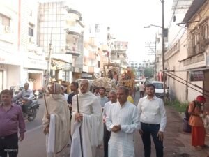 મિત મેતા દ્વારા – રવિવાર તા. ૧૨-૧૦-૨૫નાં રોજ જામનગરમાં ધર્મધજાની શોભાયાત્રા નીકળી હતી. શ્રી રાયશી વર્ધમાન પેઢી સંચાલિત શ્રી ચોરીવાળું દેરાસર તથા મોટા શાંતિનાથ દેરાસરની ધજાઓની શોભાયાત્રા યોજવામાં આવી હતી. મોટા શાંતિનાથ દેરાસરમાં મુખ્ય ગંભારા ઉપરાંત બાવન દેરીઓ આવેલી છે. આ જ રીતે ચોરીવાળું દેરાસરમાં પણ એકથી વધુ દેરાસર તથા ફરતીમાં મૂર્તિઓ હોવાથી ઘણી બધી ધજાઓ ચડાવવામાં આવે છે. આ બધી ધજાઓની ગઈકાલે શોભાયાત્રા શહેરના મુખ્ય માર્ગો પર ફરી હતી. આં શોભાયાત્રાની શરૂઆત ચાંદીબજાર ચોરીવાળા દેરાસરથી થઇ હતી. ચાંદી બજારથી હવાઈ ચોક થઇ પંચેશ્વર ટાવરથી બેડી ગેઇટ થઇ રણજીત રોડ પરથી પસાર થઈને ચાંદી બજાર પરત ફરી હતી. આ ધજાઓ હવે ધનતેરસના દિવસે ધ્વજદંડ પર ફરકાવવામાં આવશે.