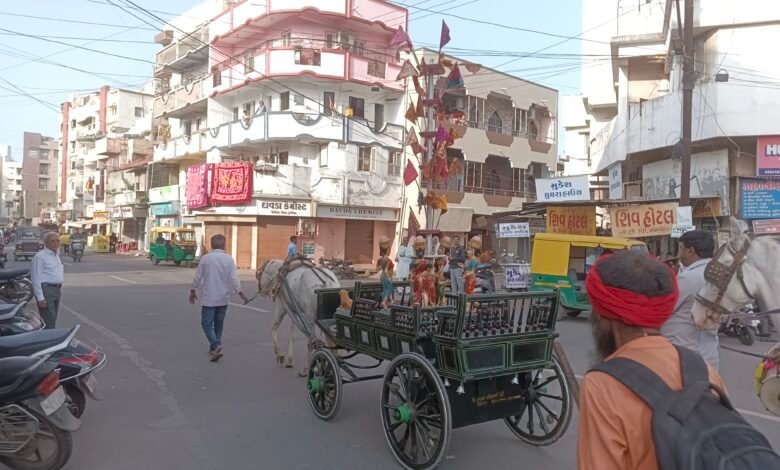 મિત મેતા દ્વારા – રવિવાર તા. ૧૨-૧૦-૨૫નાં રોજ જામનગરમાં ધર્મધજાની શોભાયાત્રા નીકળી હતી. શ્રી રાયશી વર્ધમાન પેઢી સંચાલિત શ્રી ચોરીવાળું દેરાસર તથા મોટા શાંતિનાથ દેરાસરની ધજાઓની શોભાયાત્રા યોજવામાં આવી હતી. મોટા શાંતિનાથ દેરાસરમાં મુખ્ય ગંભારા ઉપરાંત બાવન દેરીઓ આવેલી છે. આ જ રીતે ચોરીવાળું દેરાસરમાં પણ એકથી વધુ દેરાસર તથા ફરતીમાં મૂર્તિઓ હોવાથી ઘણી બધી ધજાઓ ચડાવવામાં આવે છે. આ બધી ધજાઓની ગઈકાલે શોભાયાત્રા શહેરના મુખ્ય માર્ગો પર ફરી હતી. આં શોભાયાત્રાની શરૂઆત ચાંદીબજાર ચોરીવાળા દેરાસરથી થઇ હતી. ચાંદી બજારથી હવાઈ ચોક થઇ પંચેશ્વર ટાવરથી બેડી ગેઇટ થઇ રણજીત રોડ પરથી પસાર થઈને ચાંદી બજાર પરત ફરી હતી. આ ધજાઓ હવે ધનતેરસના દિવસે ધ્વજદંડ પર ફરકાવવામાં આવશે.